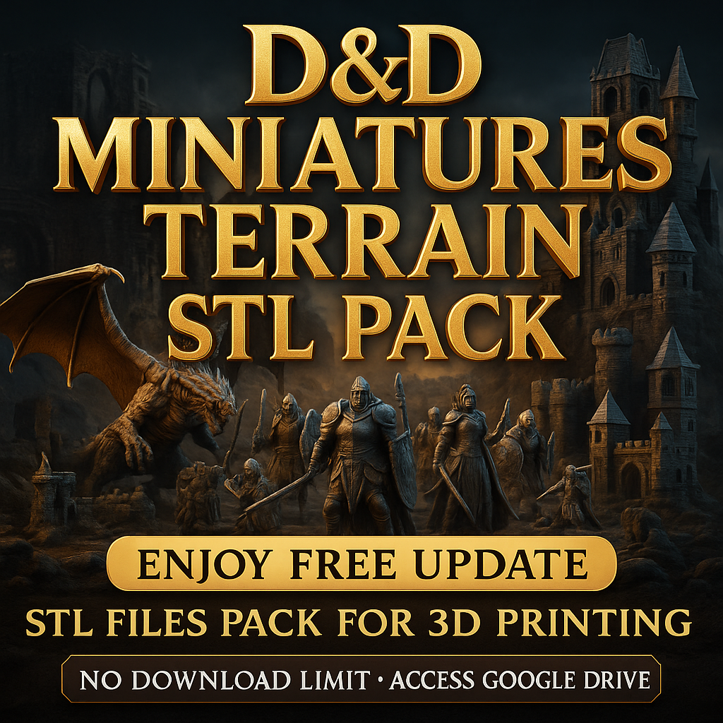 We help DMs and makers print better, faster. Our STL bundles focus on D&D & tabletop play— from heroes and monsters to terrain and scatter—organized, high-quality, and ready to print with instant access.