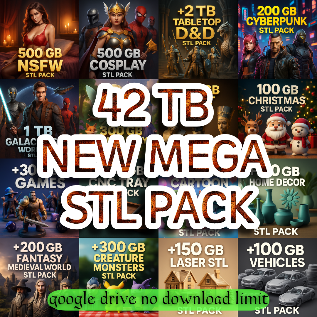 Mega 3D Print STL Pack -- 42 TB+ Life time Access with Google Drive No Download Limit